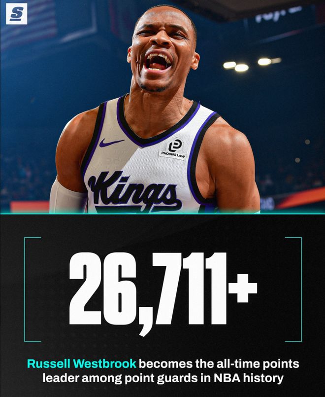 26711分控卫得分王!37岁威少再迎里程碑 美媒晒6数据证历史地位